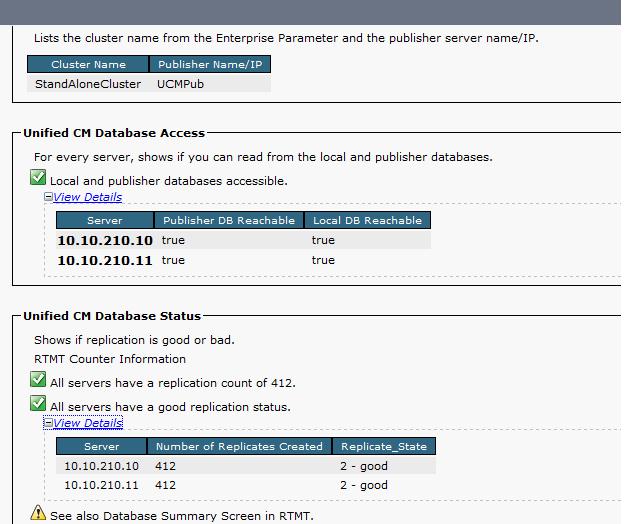 RTMT (Real-time monitoring Tool) is a very useful tool for not only checking replication Issues but for lot of other stuff. I will discuss RTMT in detail in some other section. To find out replication status using RTMT, you will need to click the ‘Call manager’ tab on bottom left and then double click ‘Database Summary’. You will get the following stats for a healthy replication.