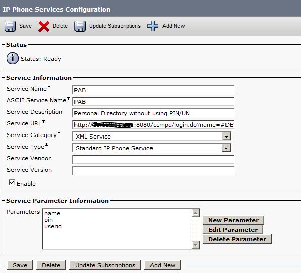 You may have come across this that though you are logged into your profile through Extension mobility but when you try to access your “Personal Directory” you will be prompted for a userid and pin. Unfortunately, this is by design and cannot be changed. There is a workaround to escape entering userid and pin which I found after getting several requests from customers. If you are among one of those who is annoyed with this then following is the procedure to get rid of it. You will need Admin rights on Call manager to make these changes.