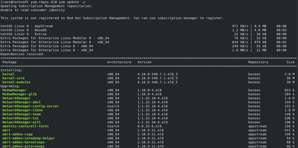 CentOS Linux 8 have reached the End of Life (EOL) on Dec 31st, 2021. This means CentOS 8 will no longer receive development resources. If you need to update your CentOS 8 then you need to change the mirrors to vault.centos.org. Alternatively, you may want to upgrade to CentOS Stream.
